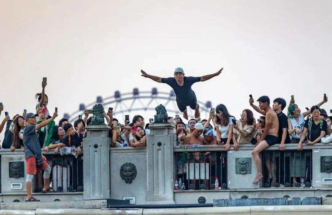 说相声的跳水大爷、劝说大爷的警察、蹲在桥墩待命的救援人员,再到劝说年轻人别跳水的大爷……随着跳水爆火,现场的元素也愈发复杂多元,但不变的是这里充斥着一种包罗万有的生机感和松弛感,展示着这座城市特有的气质:轻松、热情洋溢。