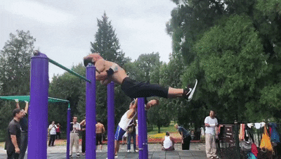 在单杠、双杠区数十名老年人排着队轮番上阵,在空中随心所欲翻腾数十圈儿不落地,引得围观者连连鼓掌赞叹。与“杠精”打擂台的是一群“撸铁”的肌肉先生。举杠铃、推腹肌轮、俯卧撑,每个人对自己的肌肉都有百分百的自信。