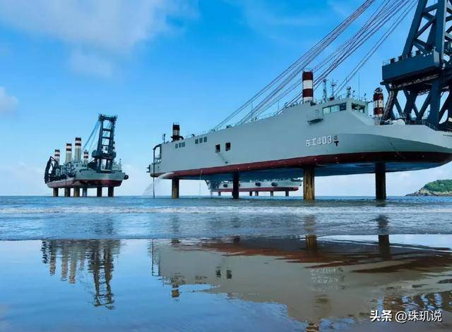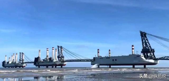 等它开到浅海或者滩涂的地方,就会伸出来好几根液压支撑腿,牢牢扎在底下,就算海面上有点风浪,它也稳得一批,不会晃来晃去。