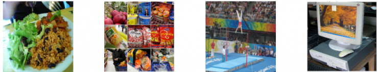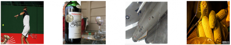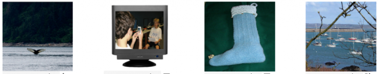 图7 多个物体图像:图像中描述了多个物体,人类可能认为几个预测标注都是合适的 PIE 示例(例如,由屏幕、鼠标和显示器组成的台式计算机,理发店的理发椅,装满红酒的酒瓶)。每张图片的标注结果如下: