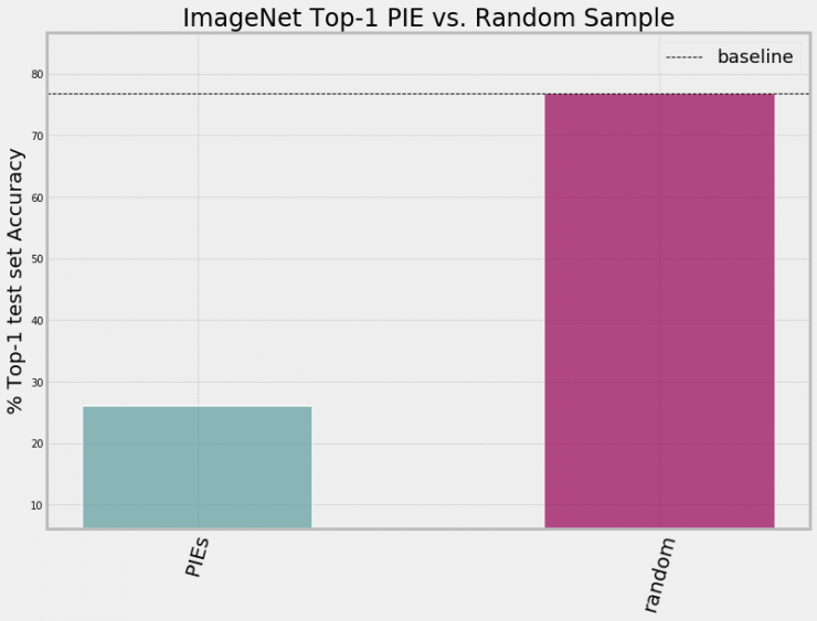 将测试集限制为随机的 PIE 图像样本会严重降低 top-1 的准确度,从测试集中删除 PIE 可以提高剪枝模型和未剪枝模型的 top-1 准确度。剪枝似乎使深度神经网络“忘记”了已经存在的较高预测不确定性的样本。