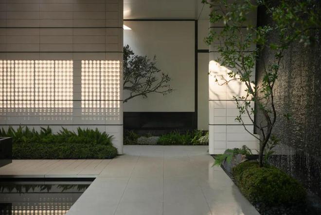 在注重互动性、探索生命力的场景中,业主可以沉浸感受庭中光影、水声、绿意,在感官的细密包裹中,享受生活于自然的悠然与宁静。空间借用自然美学,营造四时变幻的审美意趣。