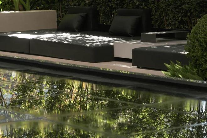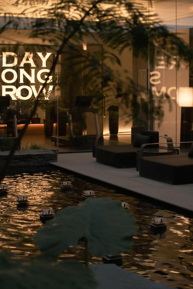 庭中则环抱以质感的宽幅玻璃,令无界泳池、环氧健身房、会客区与自然紧密联结,全方位满足业主的生活志趣与社交场景需求。