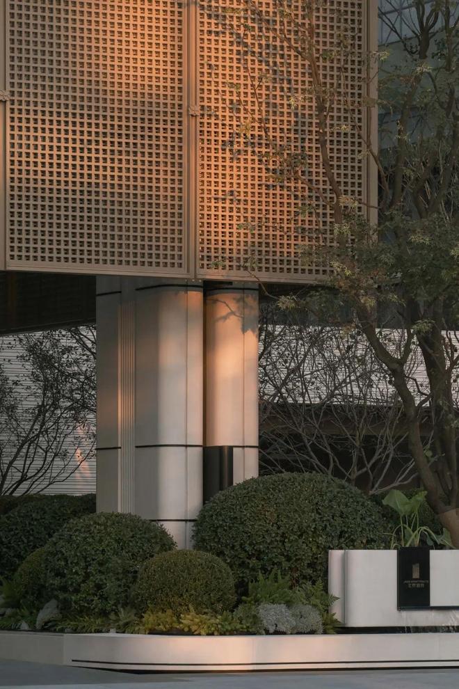 约60米长形如层峦叠翠的沿街景墙,一面铺陈隐逸山水间的情绪与意境,一面以大气开放之姿,消弭城市与社区的内外界限感,从家门口的活力公园迈进家的隐秘庭院。